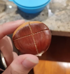 kleště vyrobené záměrně k rychlému a snadnému vyřezávání kůry kaštanů před vařením.
